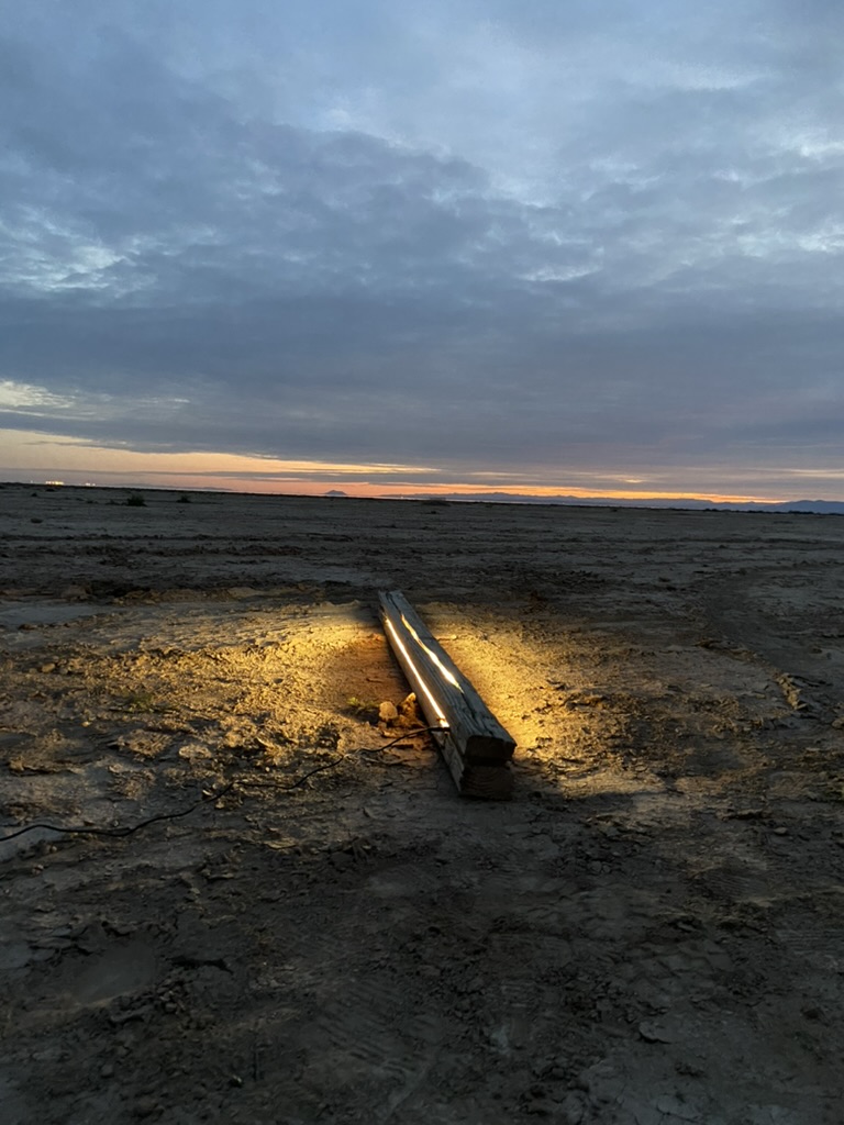 Like most old piers, the deck is gone and just the vertical piers left standing. These beams are special though, they have been soaked in the mineral rich Salton Sea and glow at night.