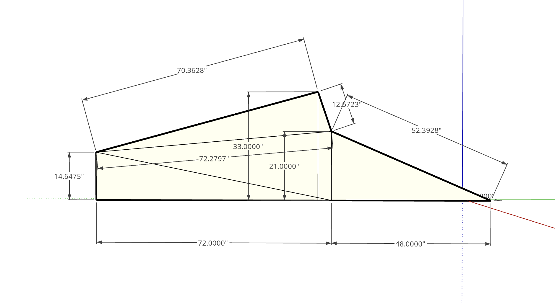 The project started with some hand drawn sketches. I took these in to Sketchup and created a 3d mockup. This allowed me to easily iterate and modify dimensions, angles, etc. as well as plan for a bill of materials.