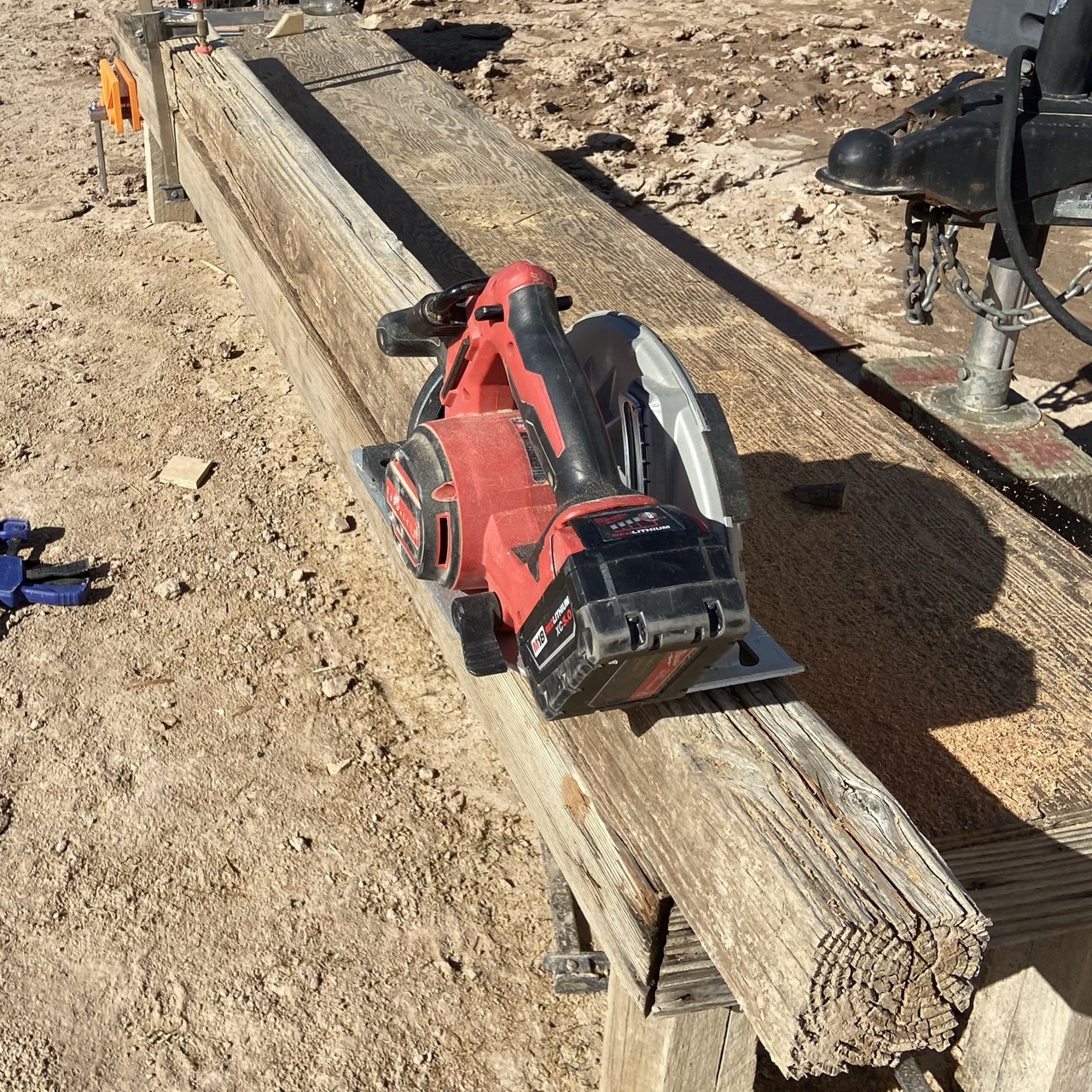 I used the low workbench I built to process the post. I used a circular saw and a jig saw for all the cuts. A router to create a mortise for the light switch.